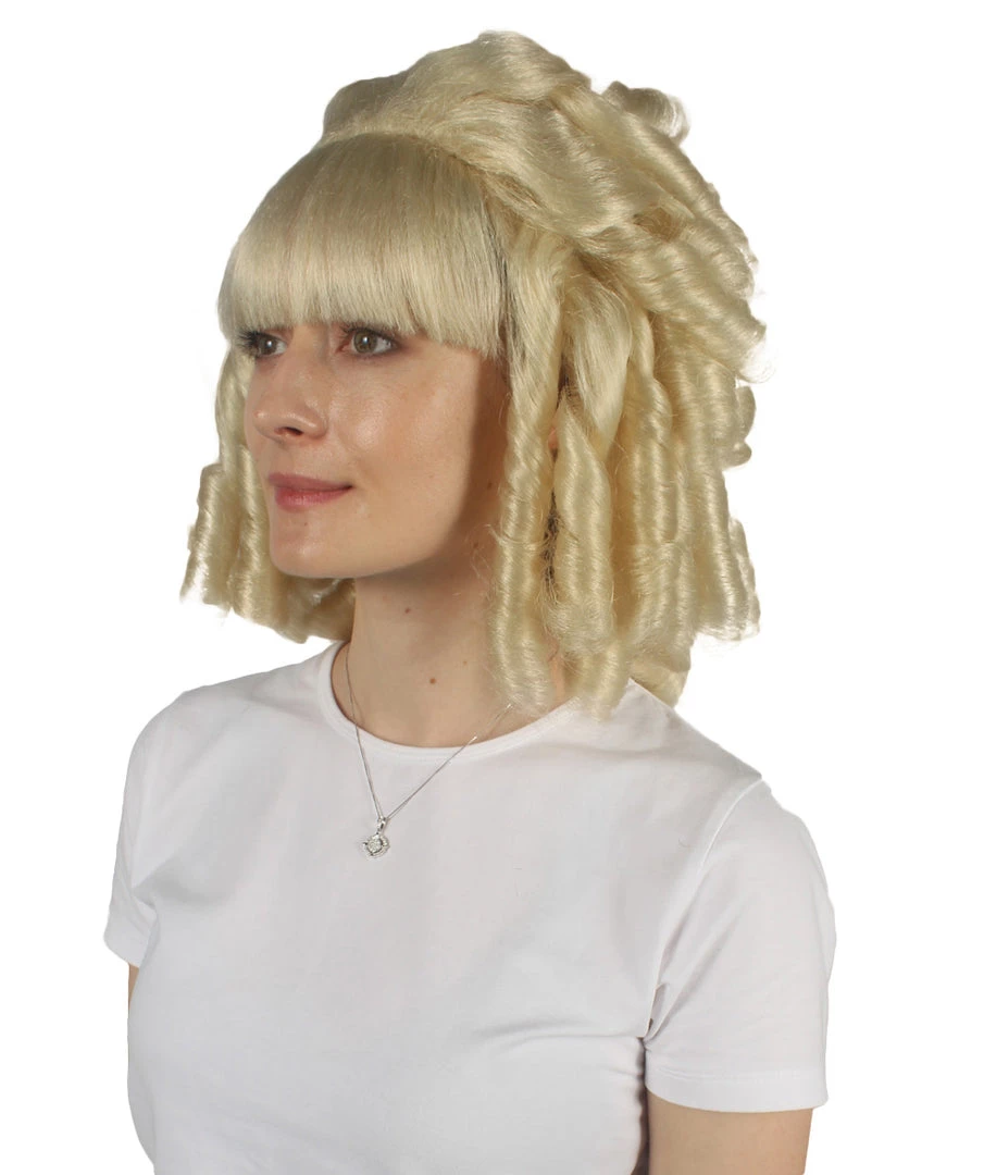 HPO Womens Colonial Historical Blonde Curly Wig | Premium Breathable Capless Cap