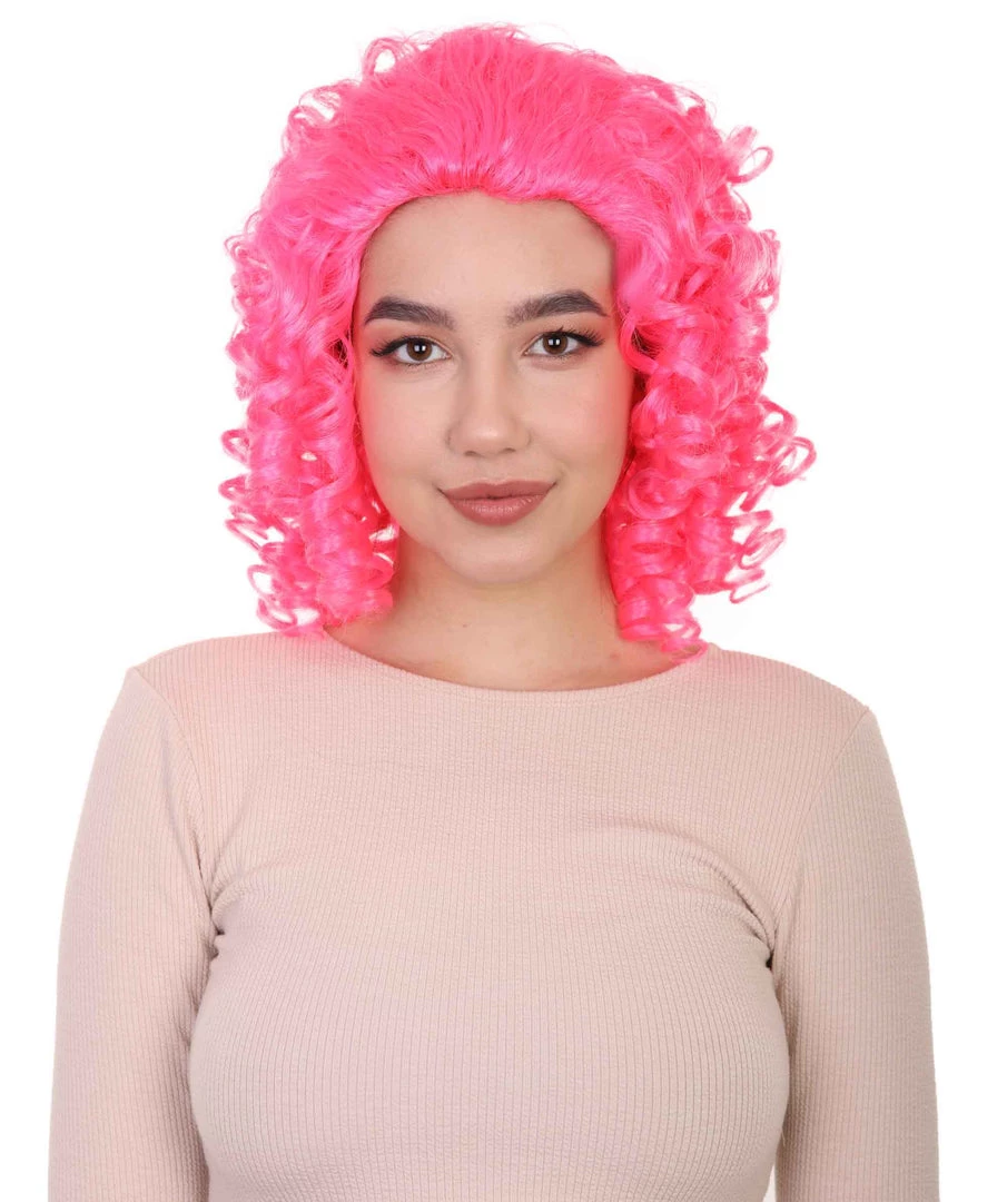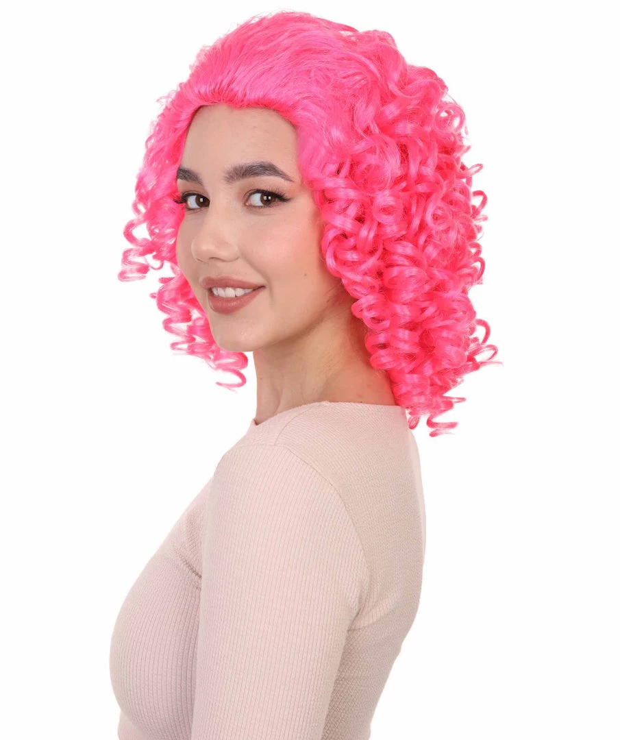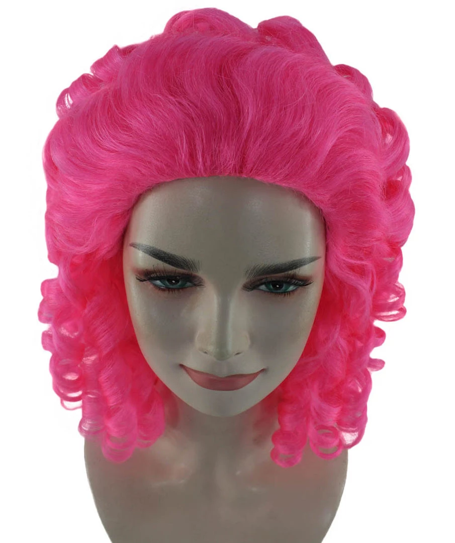 HPO Womens Colonial Ladies 18th Century Curly Wig | Pink Historical Wig | Premium Breathable Capless Cap