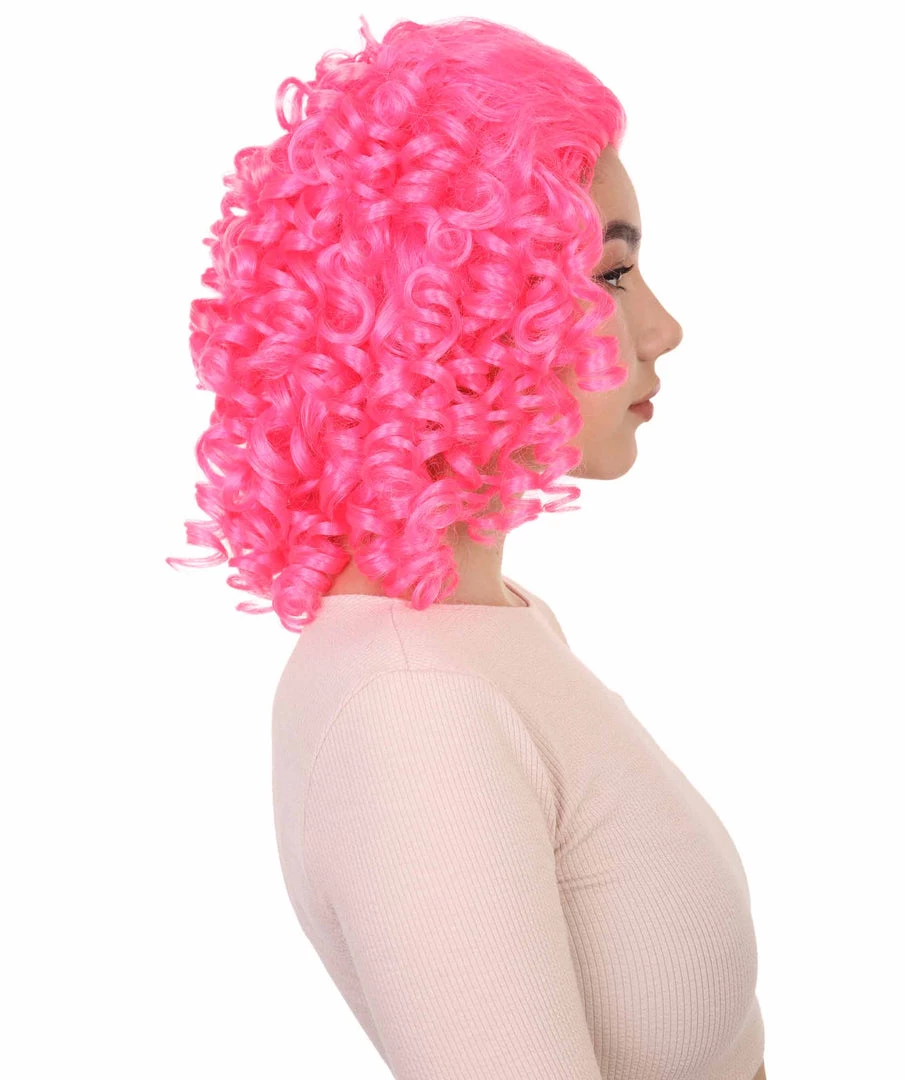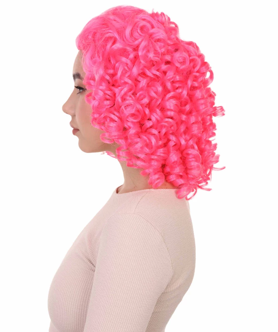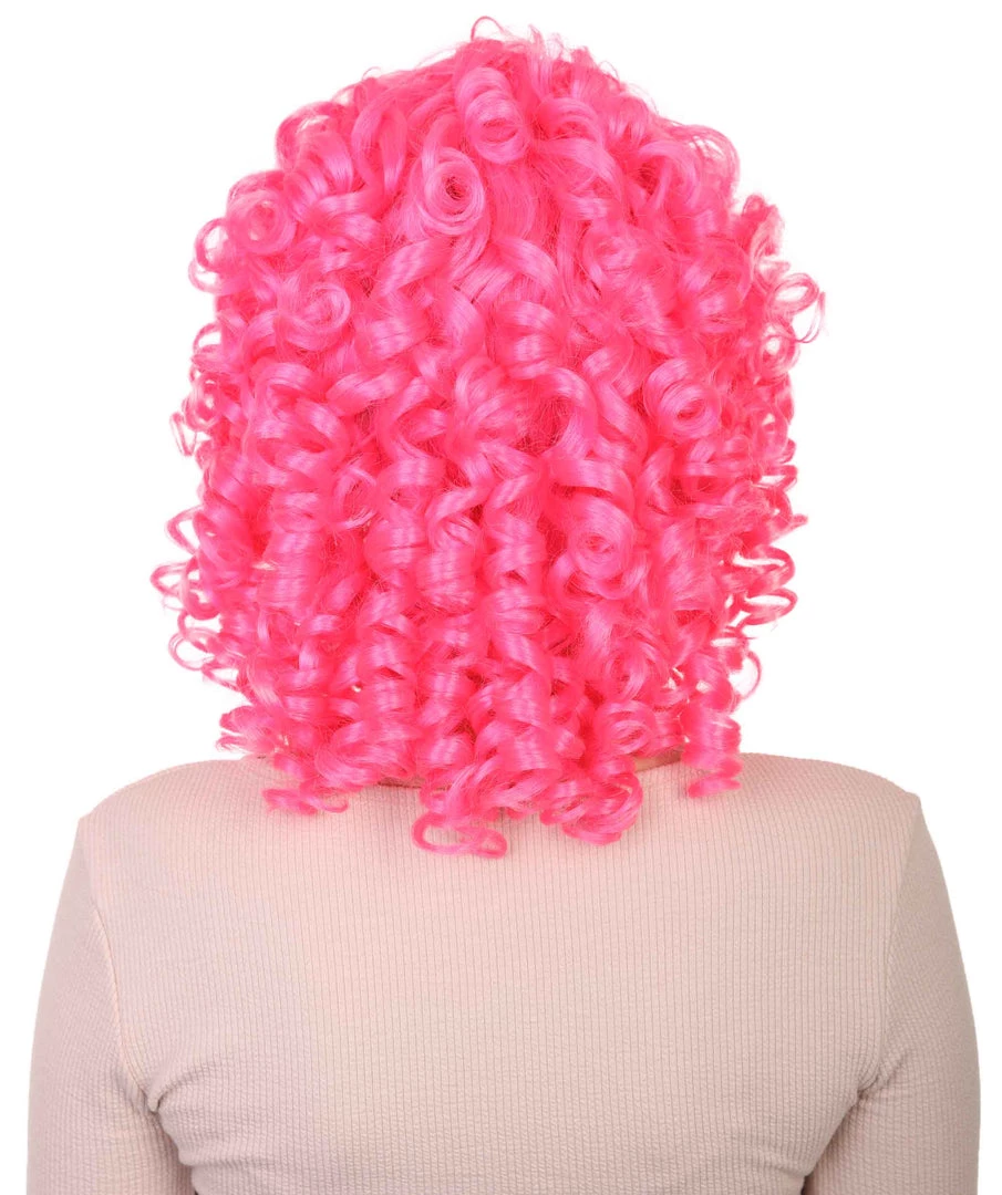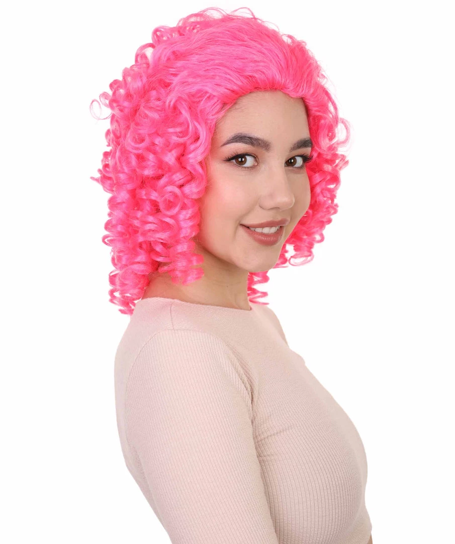 HPO Womens Colonial Ladies 18th Century Curly Wig | Pink Historical Wig | Premium Breathable Capless Cap