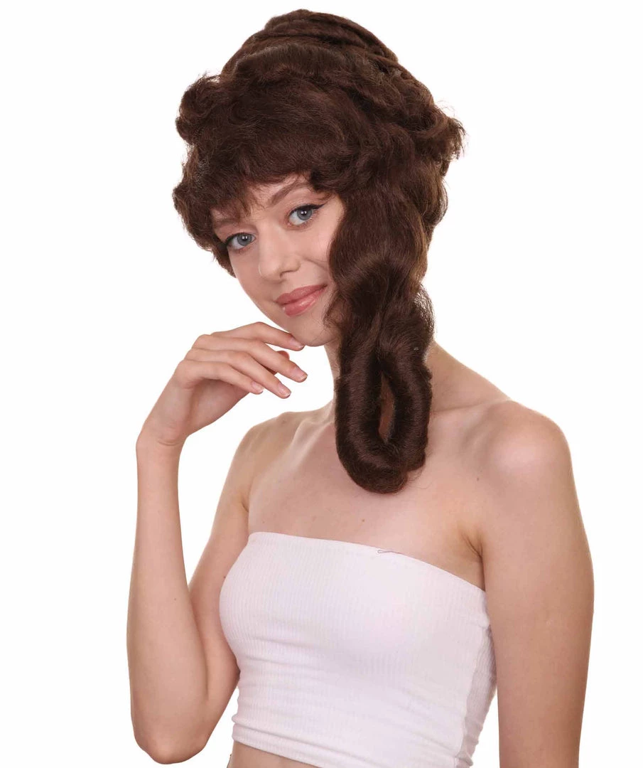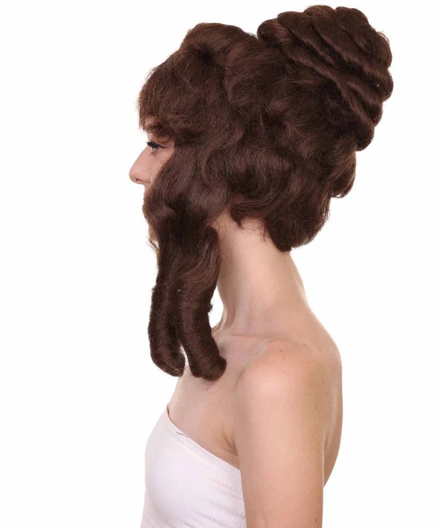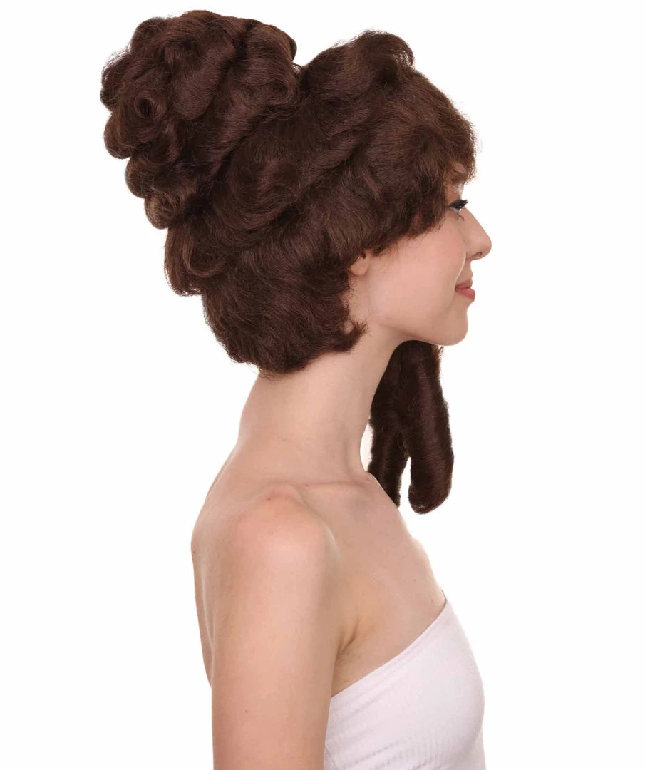 HPO Womens Colonial Lady’s 18th Century Curly Wig | Brown Historical Cosplay Wig | Premium Breathable Capless Cap Women’s