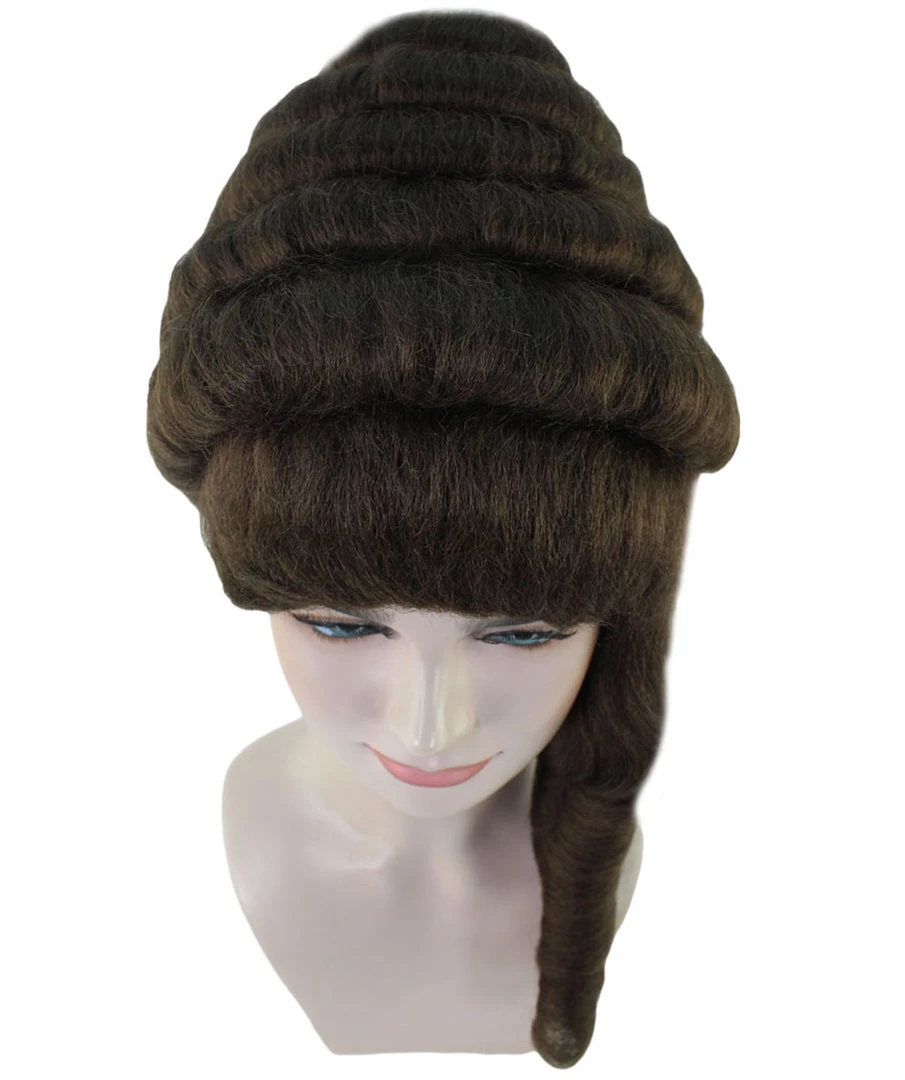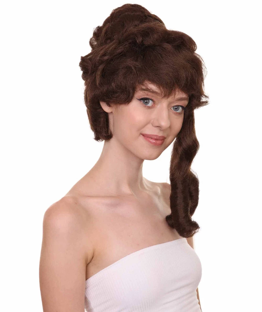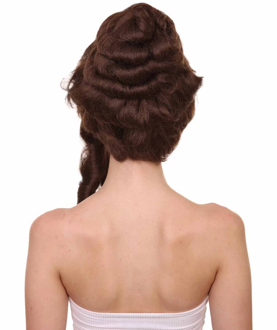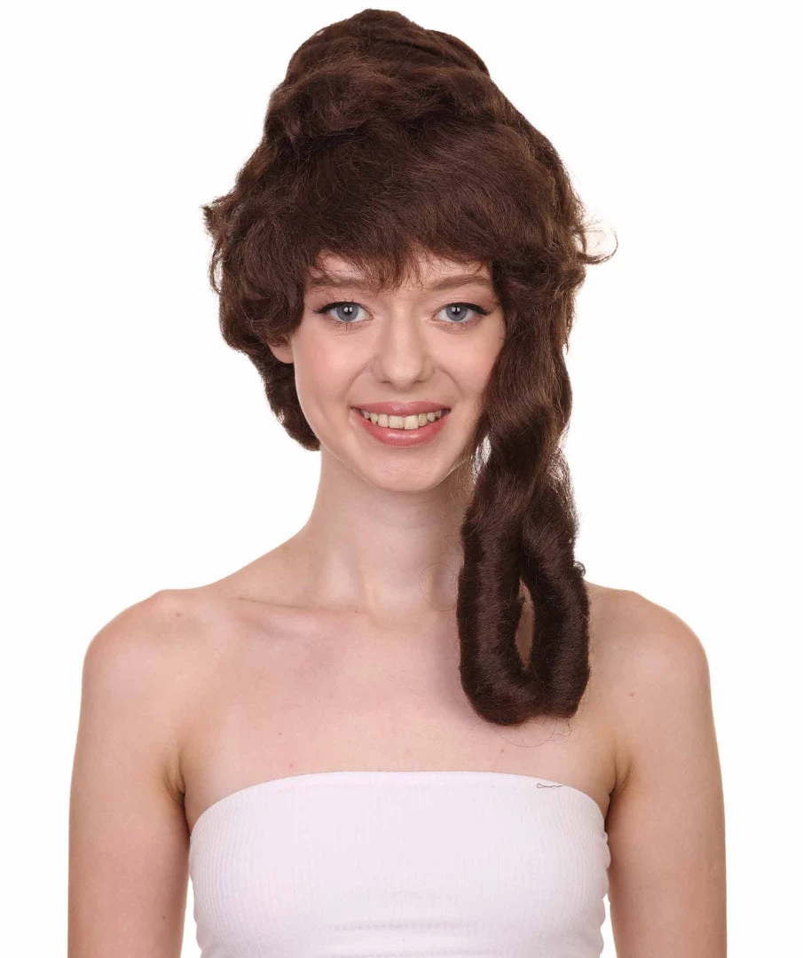 HPO Womens Colonial Lady’s 18th Century Curly Wig | Brown Historical Cosplay Wig | Premium Breathable Capless Cap Women’s