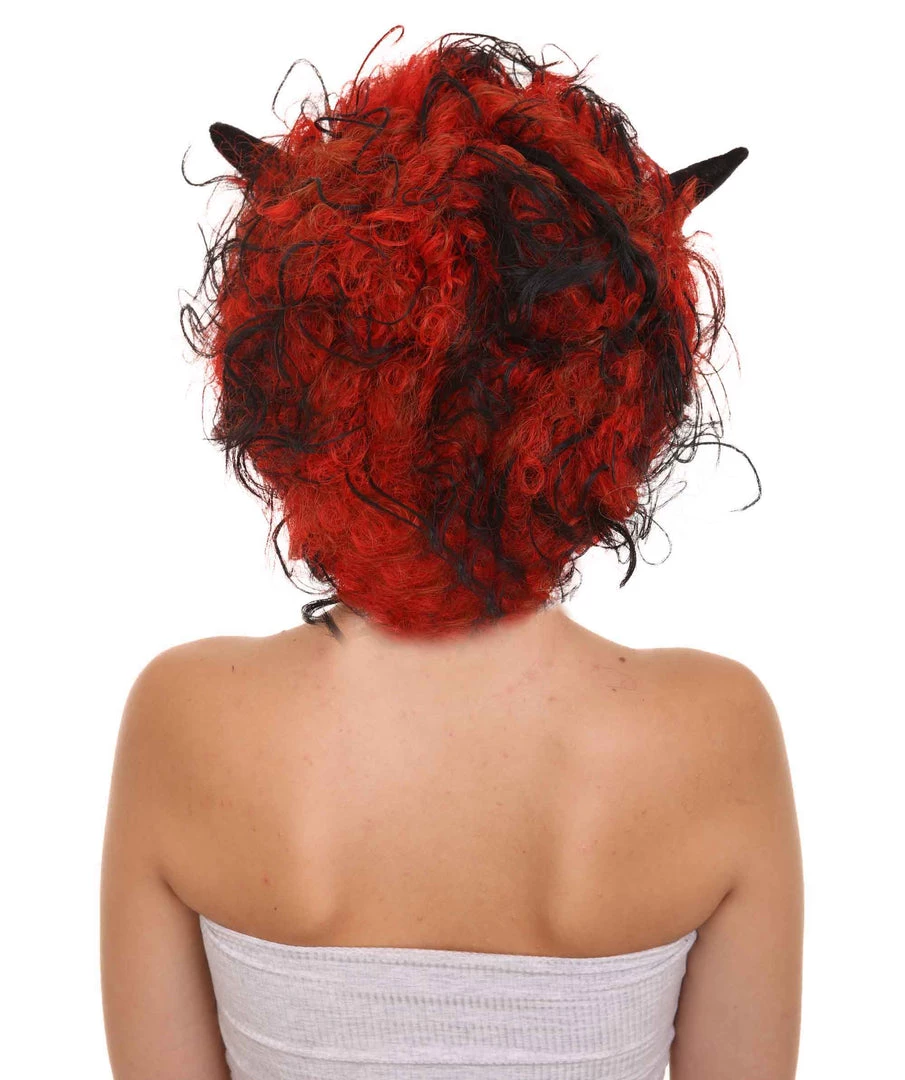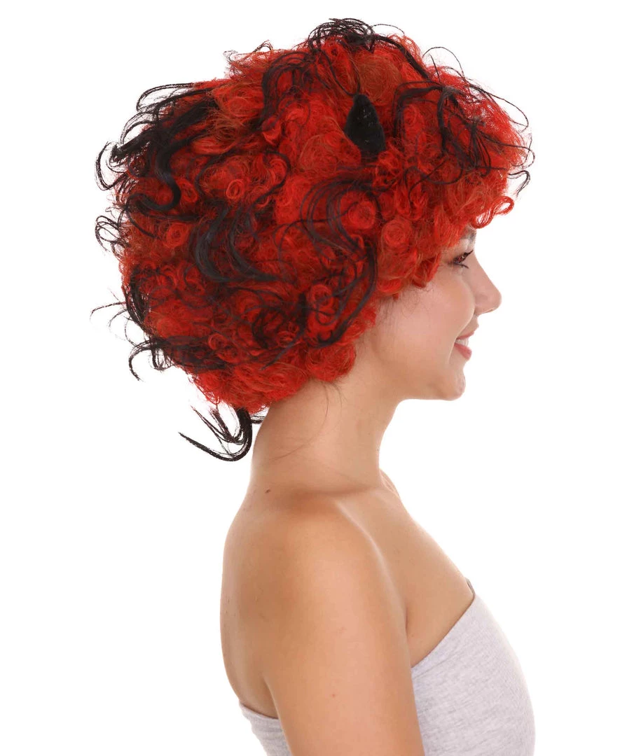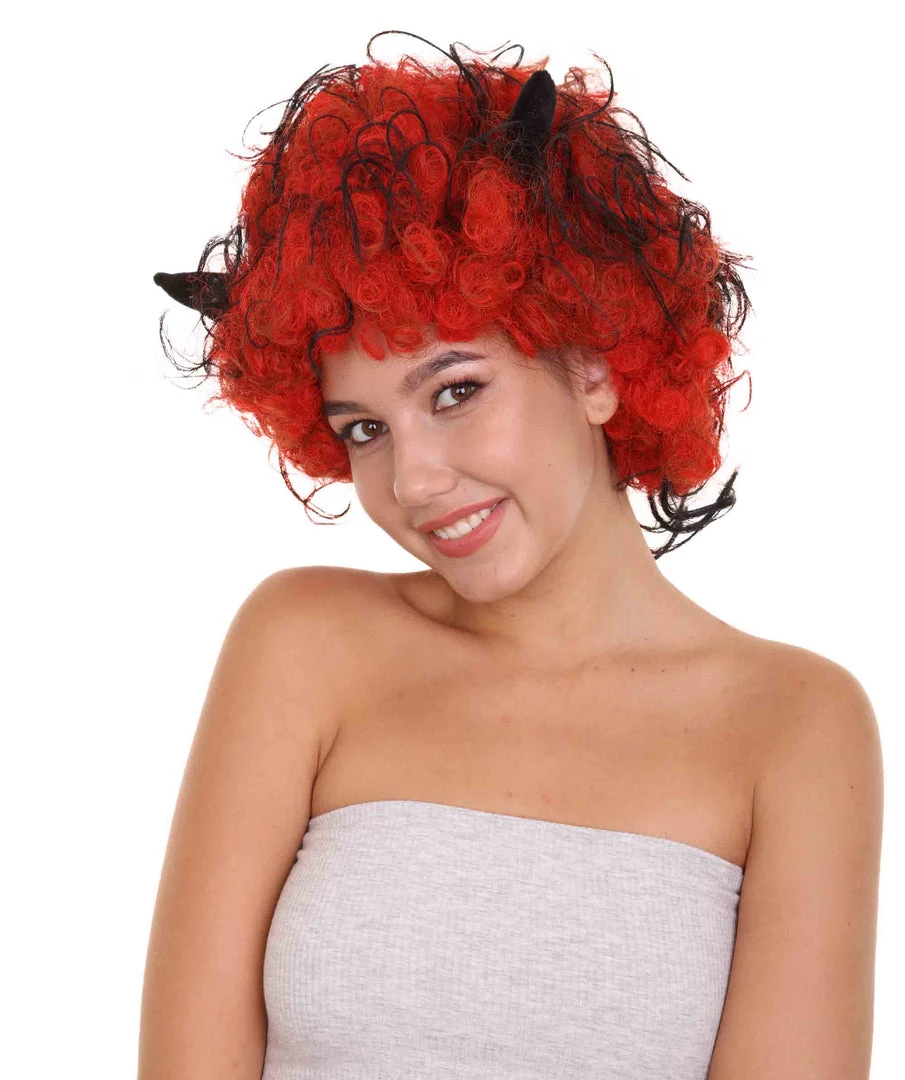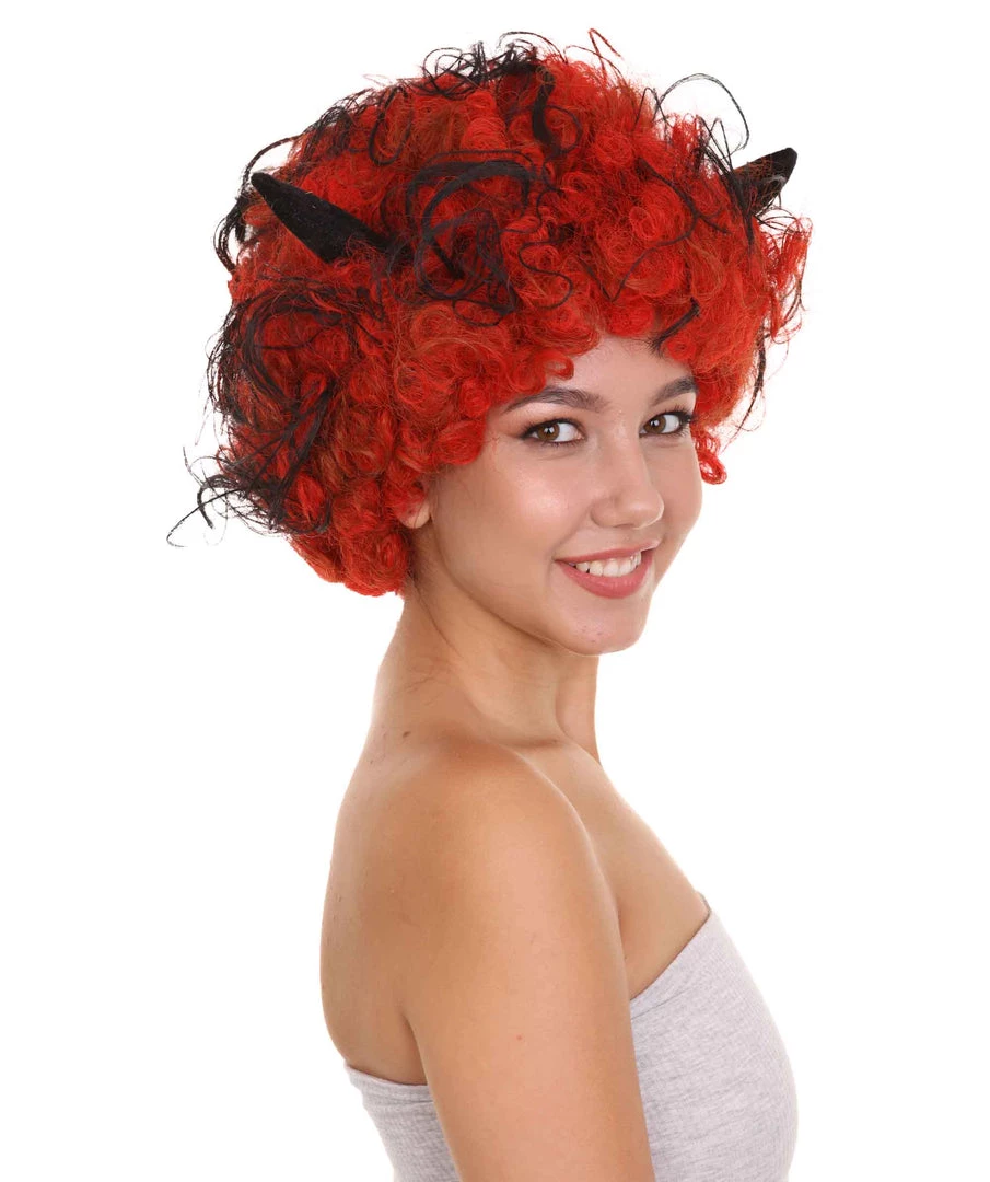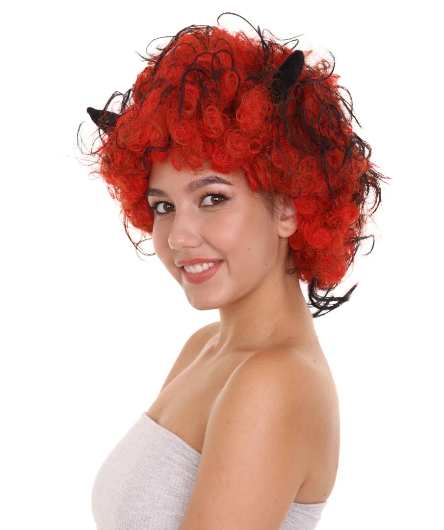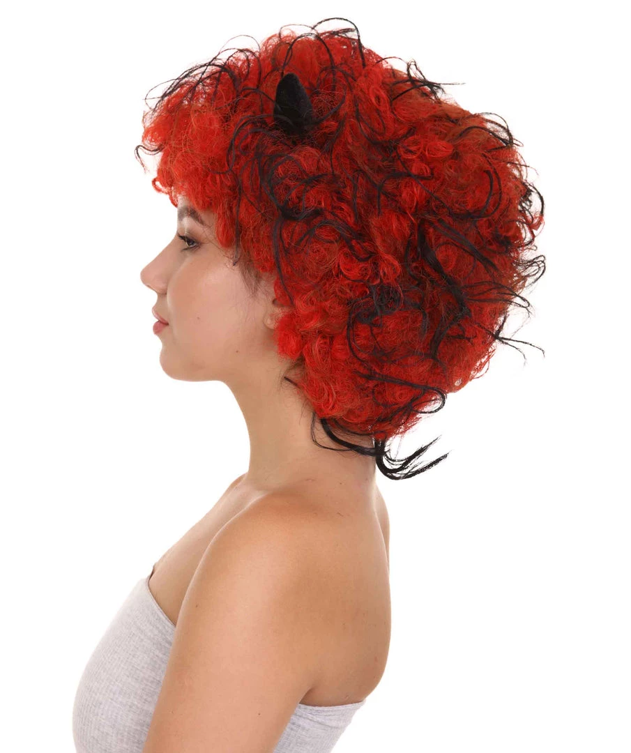 HPO Womens Devil Wig With Horns | Jumbo Super Size Afro Almost Red Halloween Wig | Premium Breathable Capless Cap Women’s
