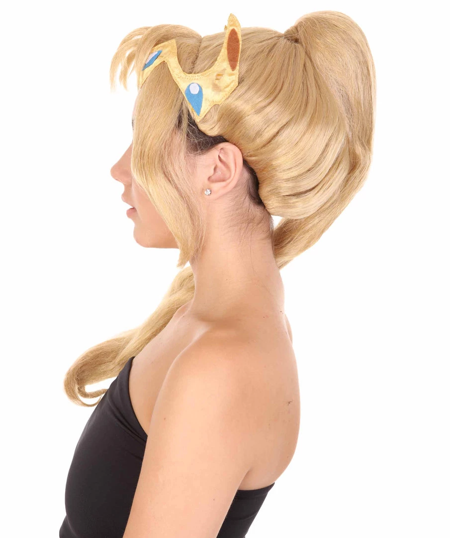HPO Womens Fantasy Comic Cosplay Ponytail Wig | Gold TV/Movie Wigs | Premium Breathable Capless Cap Women’s