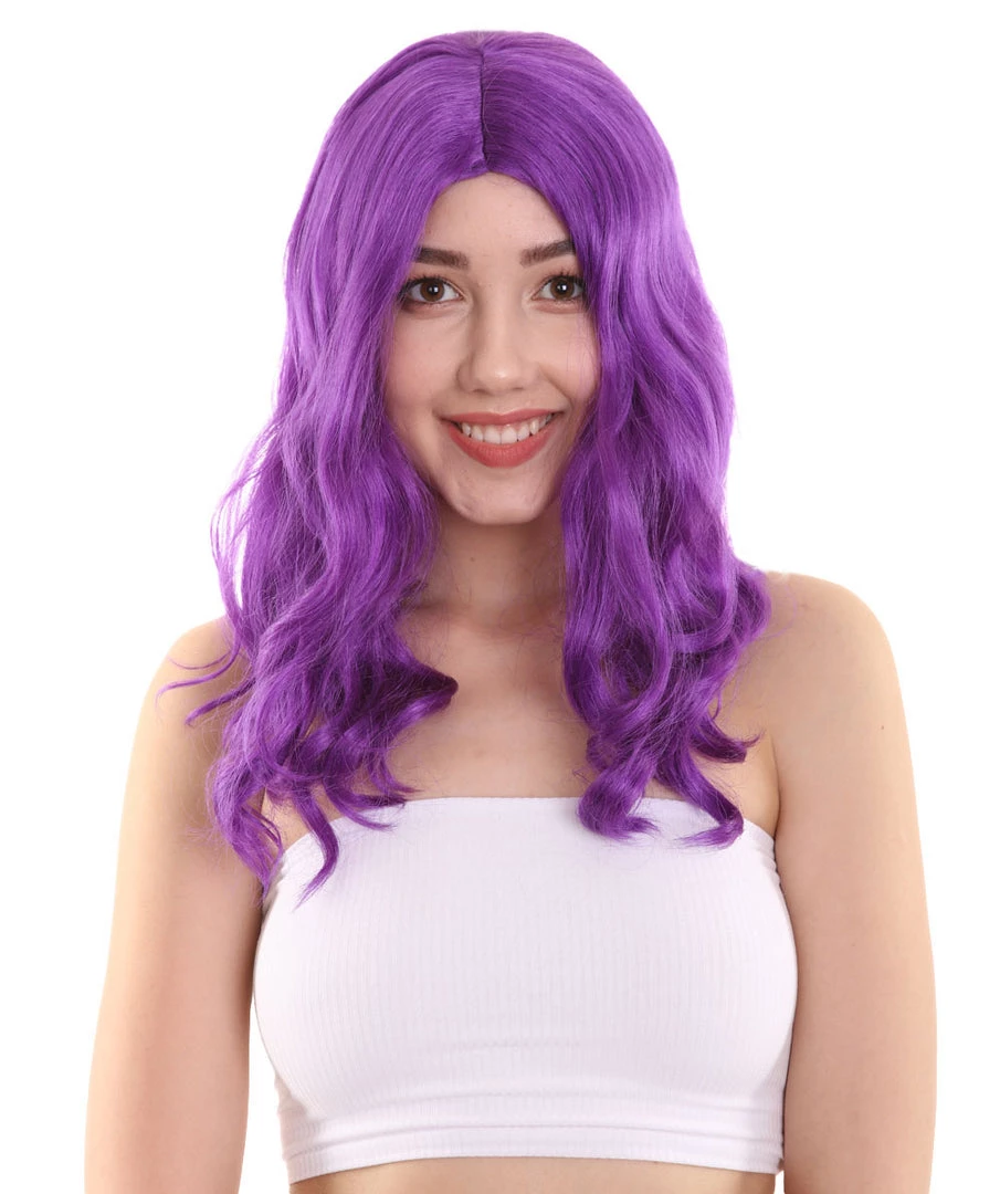 HPO Womens Fantasy Medium Wavy Wig | Purple TV/Movie Wigs | Premium Breathable Capless Cap