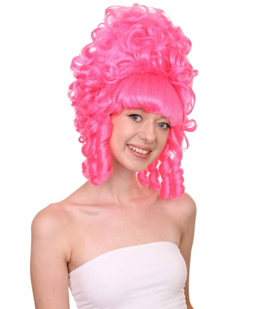HPO Womens French Colonial Marie Antoinette Wig | Neon Pink Historical Cosplay Wigs | Premium Breathable Capless Cap Women’s