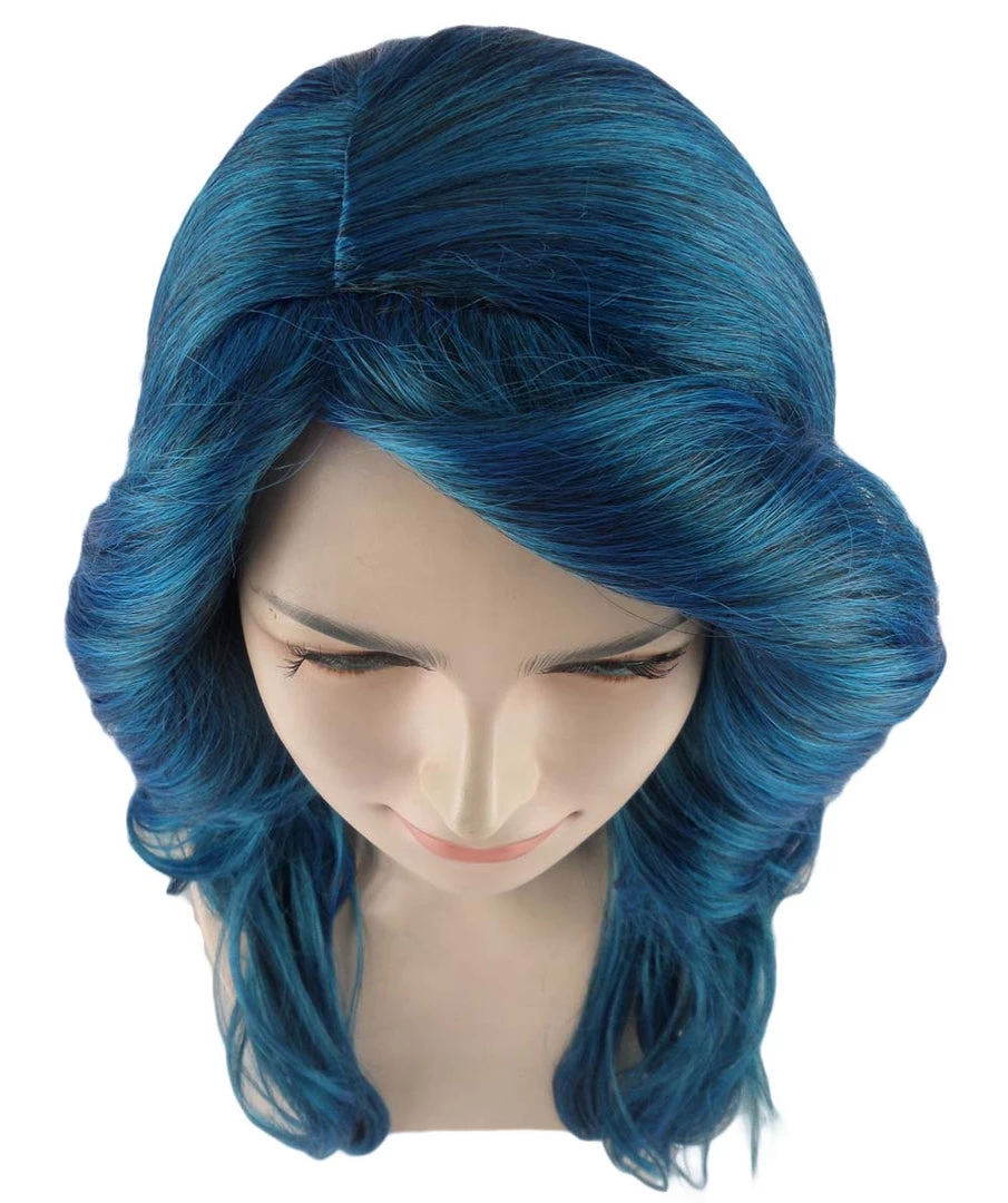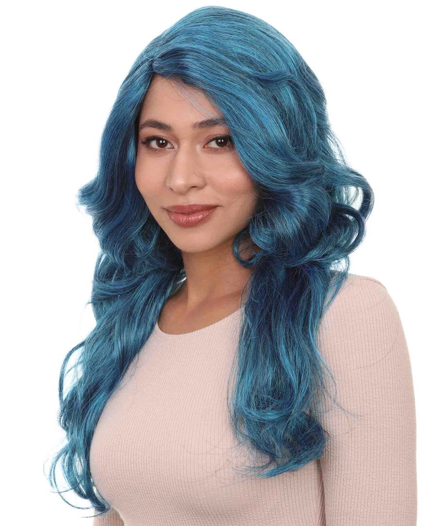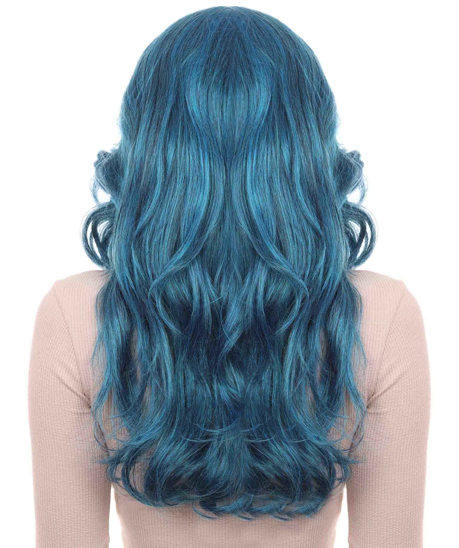 HPO Womens Glamorous Long Blue Style Wig | Stage/Event Fancy Halloween Wig | Premium Breathable Capless Cap Men’s