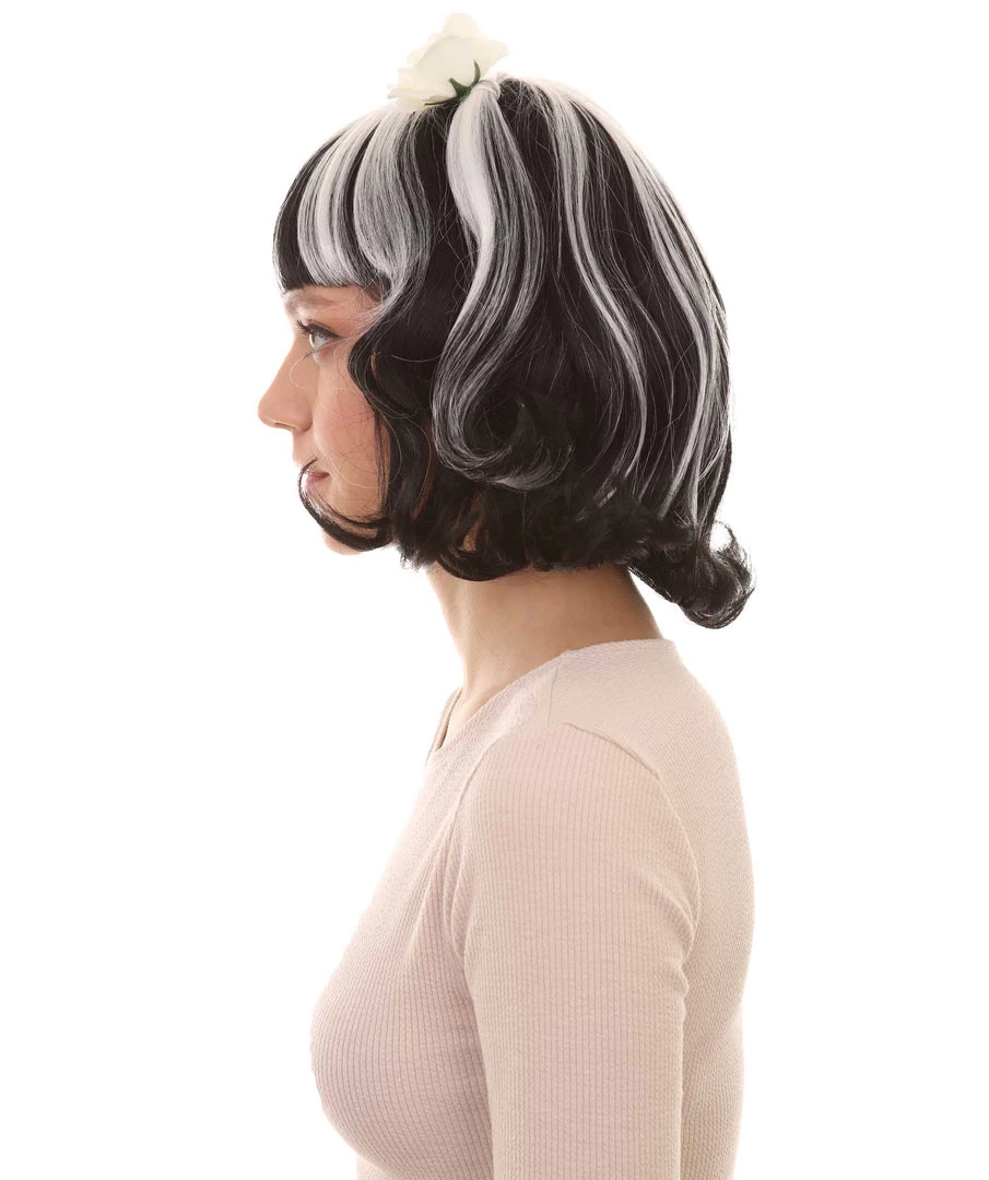 HPO Womens Gothic Pigtail Ghost Witch Bride Zombie Wig With Rose | Two Tones Black And Grey Scary Wigs | Premium Breathable Capless Cap Women’s