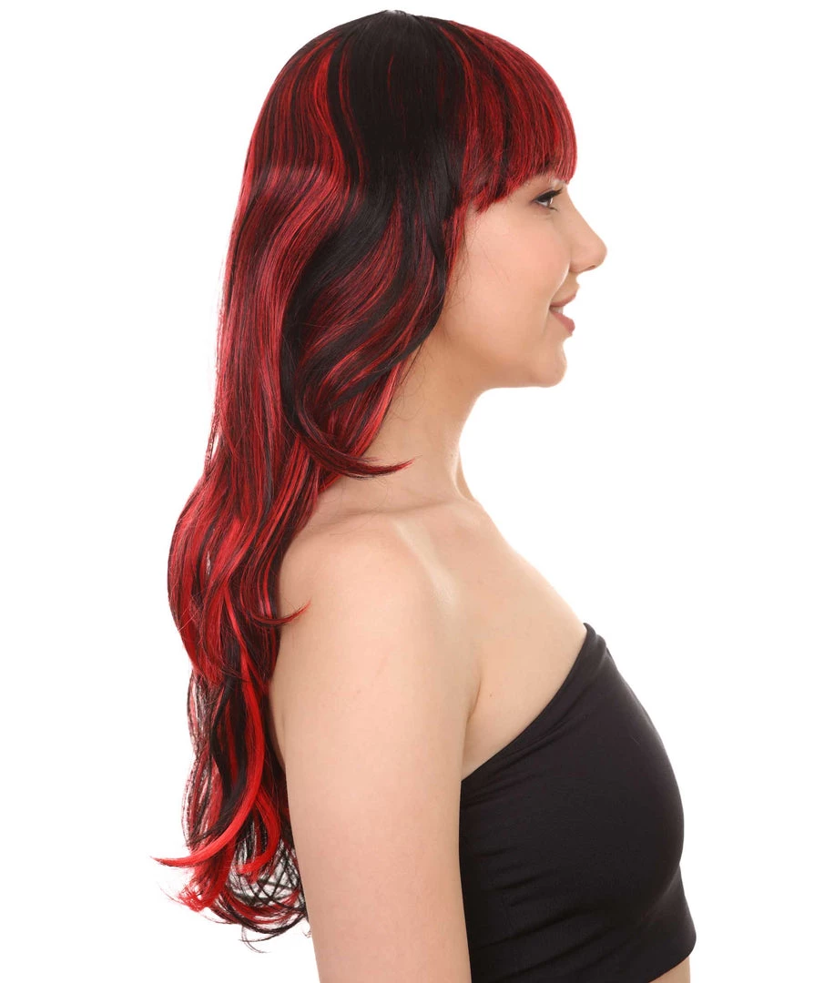HPO Womens Halloween Vixen Wig | Red Black Two Toned Stage/Event Fancy Halloween Wig | Premium Breathable Capless Cap Women’s