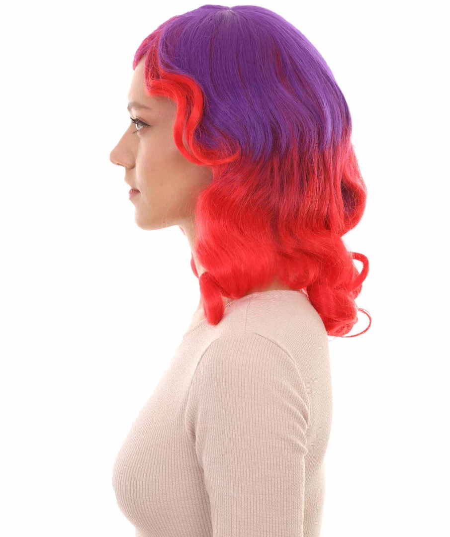 HPO Womens Long Wavy Two-tone Wig | Purple & Red Colorful Wigs | Premium Breathable Capless Cap