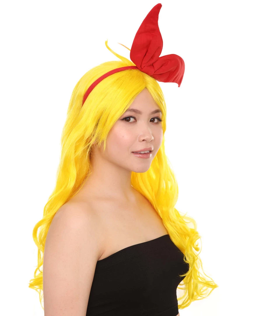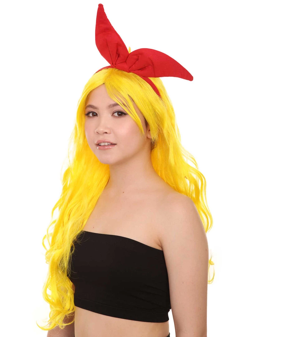 HPO Womens Manga Wig With Red Bow Set | Yellow TV/Movie Wigs | Premium Breathable Capless Cap