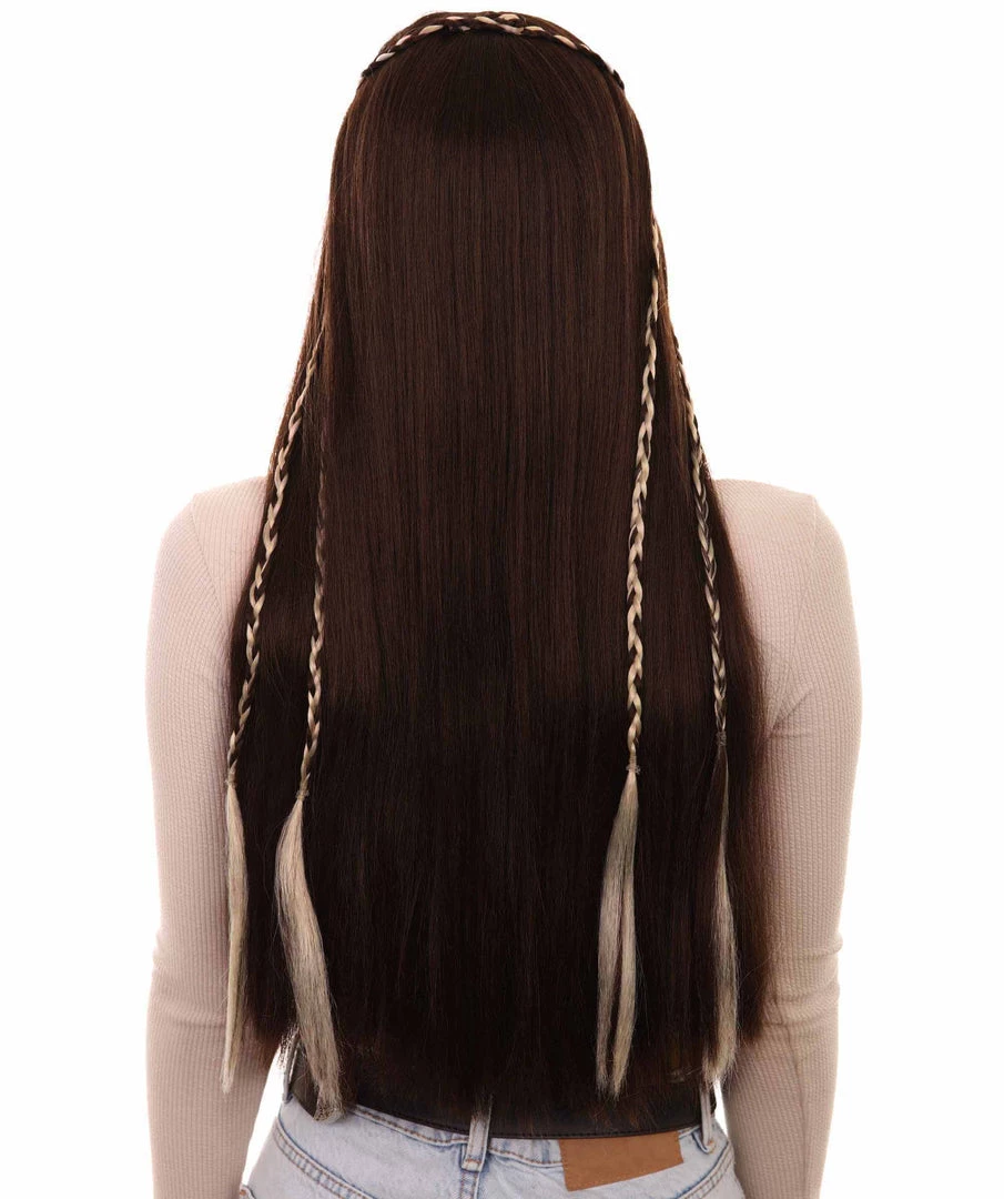 HPO Womens Renaissance Lady Medieval Princess Highlights Wig | Brown Historical Wigs | Premium Breathable Capless Cap