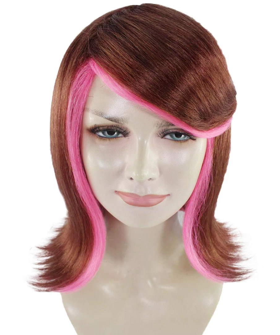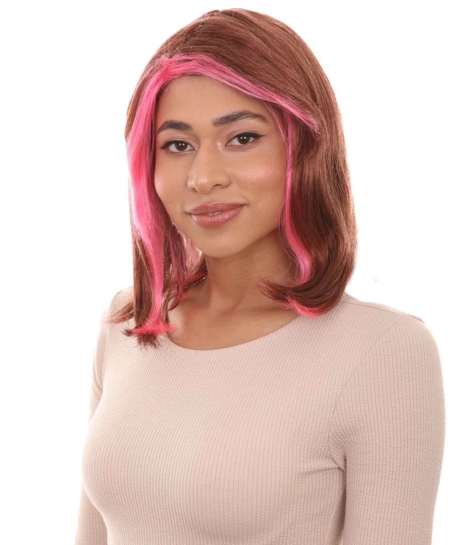 HPO Womens Two-tone Wig | Brown & Pink Party Wigs | Premium Breathable Capless Cap