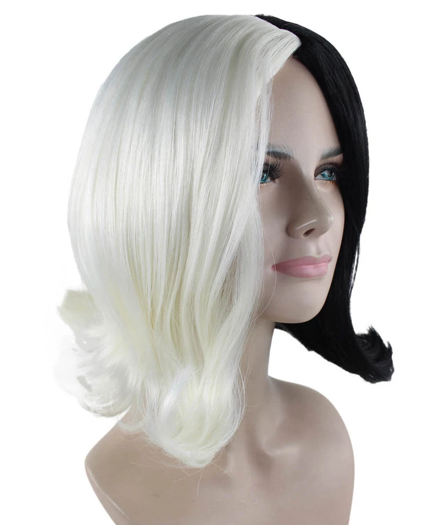 HPO Womens White Black Wig | Medium Two-toned Black & White Wig | Premium Breathable Capless Cap