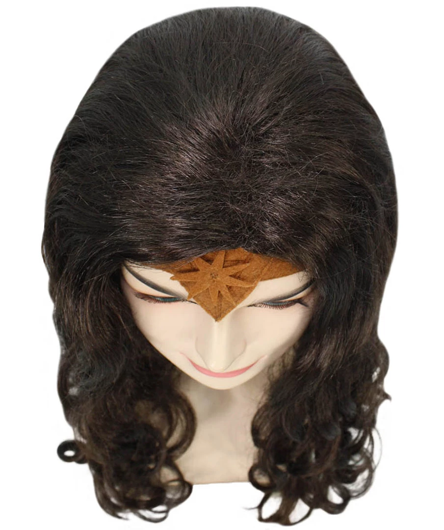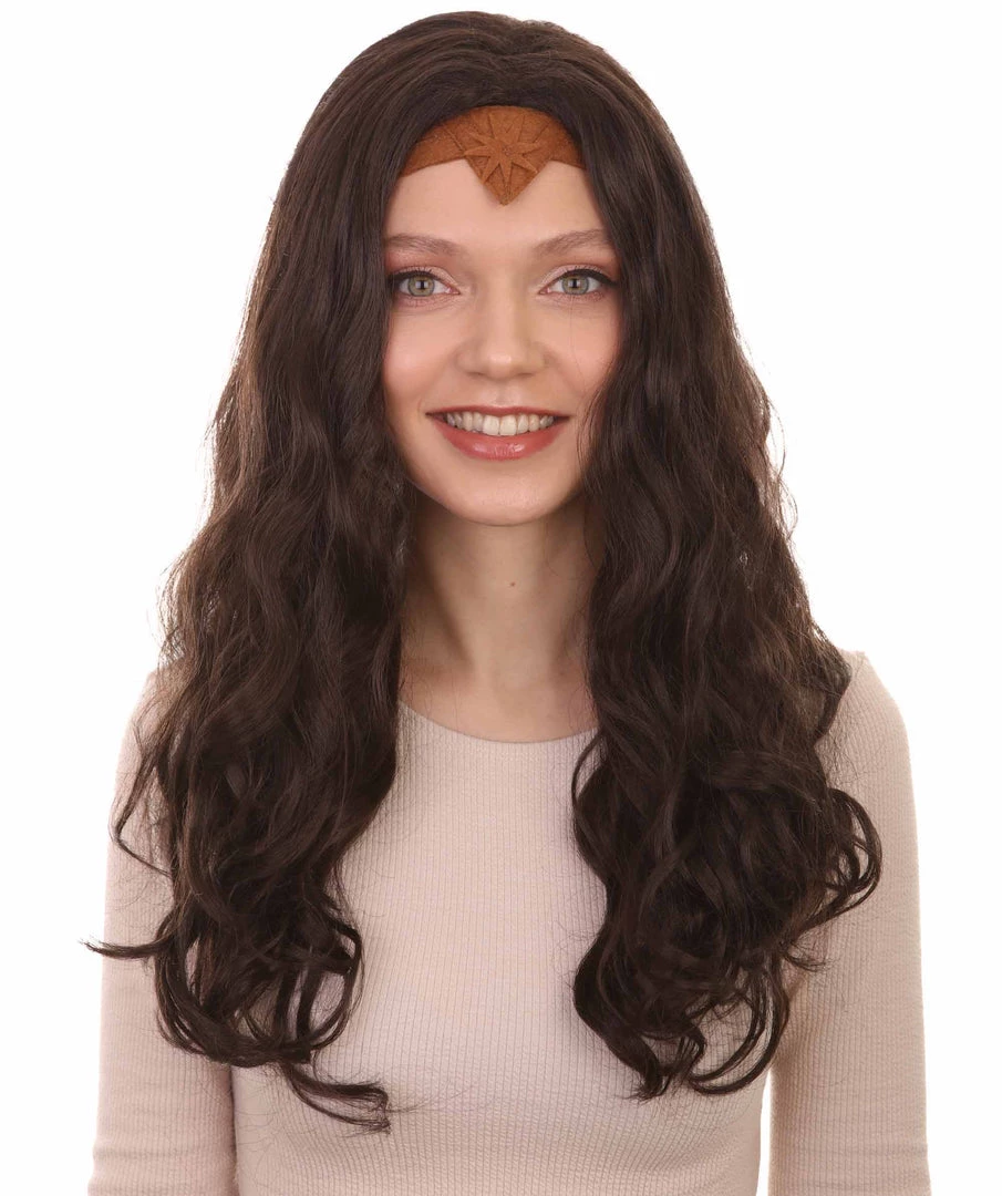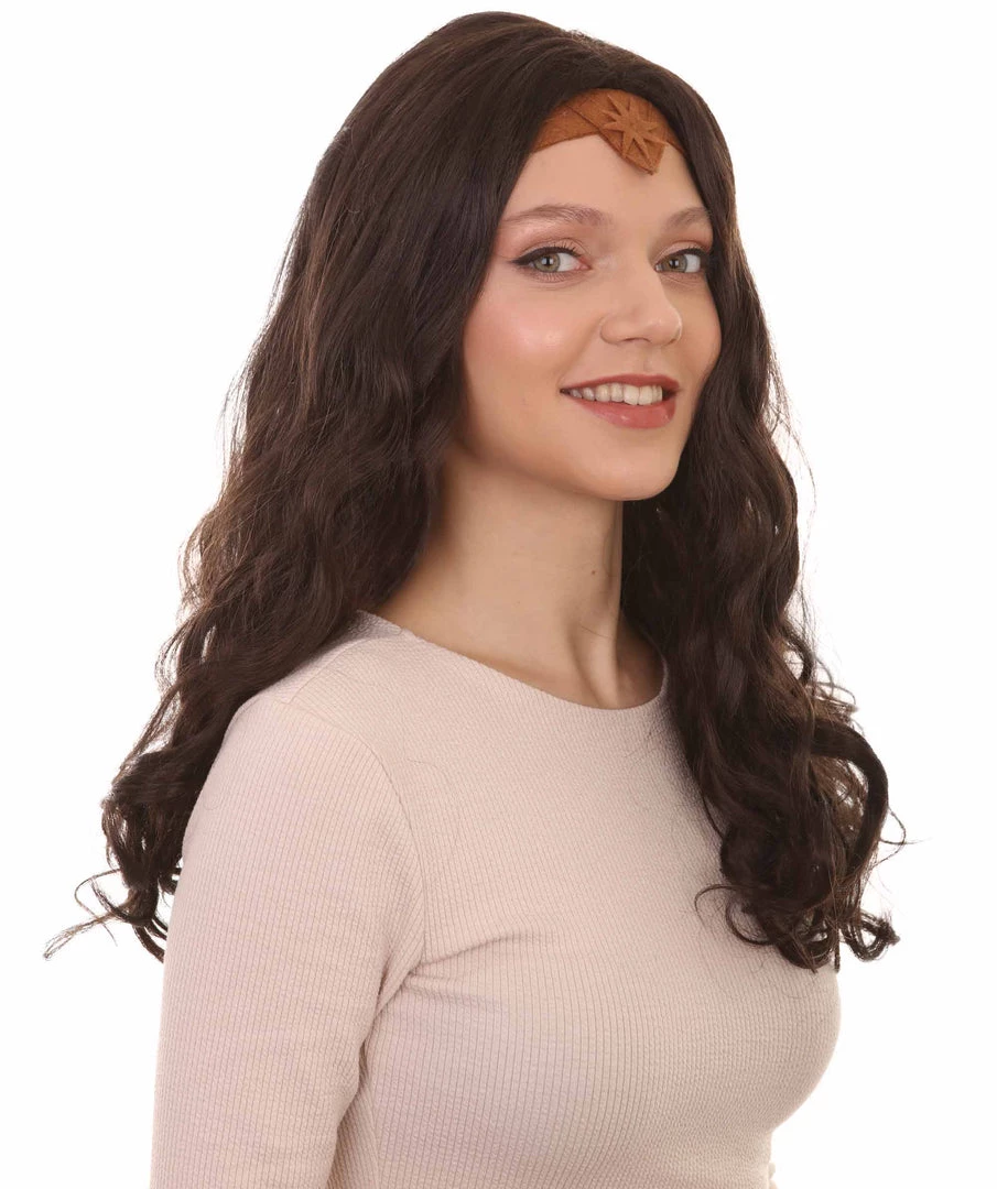 HPO Wonder Woman Curly Long Wig With Crown | Multiple Colors TV/Movie Wigs | Premium Breathable Capless Cap