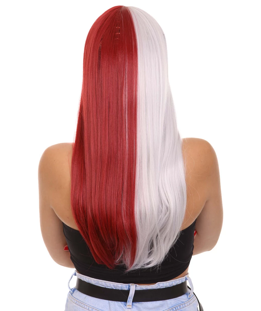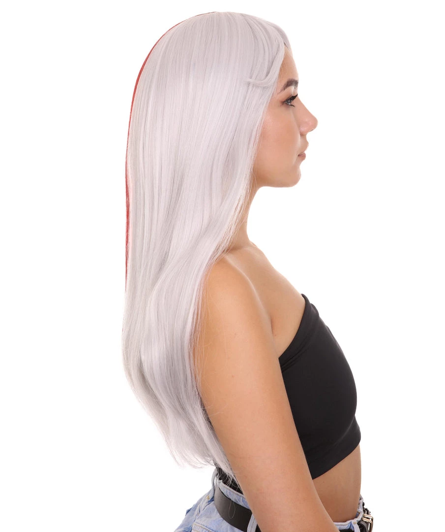KOSMOS CW Women’s Long Two Tone 25′ Silver And Red Synthetic Anime Wig – Capless Cap Heat Resistant Fibers – Bob Style With Pointy Bangs